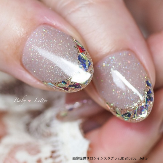 オーロラのラメが輝き指先を彩ります